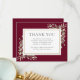 Um cartão de agradecimento fúnebre elegante com folhagem botânica de aquarela em um fundo burgundy. Você pode personalizar com sua própria mensagem de agradecimento. Criado por Thisisnotme©