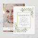 Elegante cartão de agradecimento de folhas de vegetação em aquarela para funeral. Você pode personalizar com sua própria mensagem de agradecimento e foto dos entes queridos no verso. Criado por Thisisnotme©