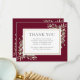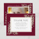 Um elegante cartões de agradecimentos fúnebre com folhagem botânica de cor aquática em fundo burgundy. Você pode personalizar com sua foto escolhida e seu obrigado. Um encantador guardião para a família e os amigos para o tesouro. Projetado por Thisnotme©