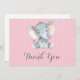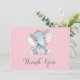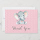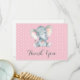 Cartão De Agradecimento Menina de Elefante Bonita Rosa e Cinza