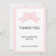 Mostre apreço com estilo com este Cartão de Agradecimento de Aniversário de 1 ano da Menina do Laço Rosa! Com um design de laço rosa doce, cada cartão pode incluir o nome da sua filha, tornando-se uma maneira atenciosa e memorável de agradecer aos convidados por celebrarem o dia especial da sua pequena. Perfeito para festas de aniversário, acompanhamentos de presentes ou lembranças. 🎀💌