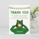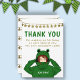 Menina Fofa em Capuz de Sapo Verde em Aniversário Cartão de Obrigado. Um desenho fofo de uma menina vestindo um capuz de sapo verde. Design divertido para uma menina com estrelas de bandeirolas douradas brilhantes. Adicione seu texto e faça um cartão de agradecimento de aniversário legal e divertido para a menina.