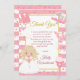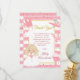 Lindo design de primeira comunhão com fundo de faixas rosa e confetes de folha dourada. Gráficos por Mujka e KlouiseDigiArt no Etsy.
