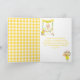 Este cartão de agradecimento fofo e caprichoso apresenta uma menina loira de pele clara em uma barraca de limonada amarela decorada com flores e bandeirolas. Ao fundo, um céu azul, sol e borboletas. O texto combina fontes decorativas e sem serifa para um visual moderno e elegante. Isso é perfeito para uma festa de aniversário de verão.