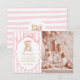 Cartão De Agradecimento Meninas Urso de Pelúcia Arco Rosa Listras 1º Anive