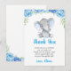 Cartão De Agradecimento Menino Elefante Azul Festa de Aniversário Pequeno