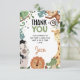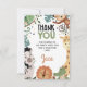Rapazes, Nascer Verde Marrom, dois sejam Cartões de agradecimentos selvagens, rapazes, safari ou cartões de agradecimentos de aniversário selvagem, com seis animais da selva. A parte traseira da placa apresenta um padrão de impressão chita.