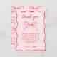 Send a festive note of gratitude with this Merry Little Baby Shower thank you card, featuring a hand drawn bow, soft pink and red accents, and elegant holiday details. Perfect for a winter baby shower or Christmas celebration, this design adds a touch of seasonal charm to your stationery suite. Complements the Merry Little Baby collection for a coordinated holiday look.