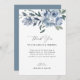 cartão floral azul empoeirado com um obrigado personalizado que você envia aos seus convidados.