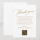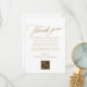 Cartões de agradecimentos Elegante de Mesa de Caligrafia Dourada com Código QR e Texto Personalizado... Uma simples, mas elegante carta de obrigados para adornarem as placas nas suas mesas de recepção. Basta revisar o texto "marcador de posição" com suas próprias mensagens e alterar o gráfico de código QR digitando o URL do site do seu casamento. Todo texto, exceto os elementos de caligrafia, pode ser facilmente revisado no modelo de personalização.