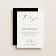 Minimalista Chic Contemporâneo, obrigado de mesa. O Modelo fornece várias linhas para a mensagem do obrigado personalizado. Características, tipografia negra sobre a coordenação de fundo preto e branco.