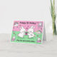 Um cartão de aniversário de desenho animado fofo com dois coelhos brancos oferecendo um presente contra um fundo rosa decorado com símbolos divertidos. O cartão expressa amor e apreço com palavras doces, tornando-o o presente perfeito para alegrar o aniversário de alguém querido.