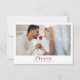 Thank your guests in a timeless and romantic way with this elegant wedding thank you card featuring a beautiful photo layout and classic script typography. Designed for modern yet romantic weddings, this personalized card lets you showcase a favorite wedding or engagement photo while expressing heartfelt gratitude. Its clean, minimalist style pairs perfectly with formal, classic, or contemporary wedding themes creating a keepsake your guests will truly appreciate.