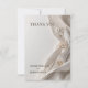 Diga obrigado com uma simplicidade atemporal. Este cartão de agradecimento de casamento tipográfico minimalista apresenta uma fonte serifada refinada, um layout limpo e um fundo neutro suave com delicado tecido drapeado e flores. Projetado para casais que apreciam a elegância discreta, é a maneira perfeita de expressar gratidão após o seu casamento.