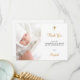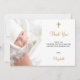 Um cartões de agradecimentos de batismo minimalista de ouro branco e falso. Personalize e adicione sua foto da criança, obrigado nota e nome. Sexo neutro.