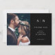 Estes elegantes e modernos cartões de casamento, graças a vocês, apresentam um simples design de texto preto e branco que exude o estilo minimalista, com duas das suas fotos pessoais favoritas. Adicione suas iniciais ou monograma para torná-las completamente suas.