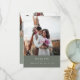 Expresse sua sincera gratidão aos seus convidados com essas cartas de obrigado de casamento minimalista e elegante. Apresentando palavras limpas em fontes de sans serif brancas, colocadas sobre uma cinza de oliveira calorosa, e personalizáveis com duas de suas queridas fotografias, estas cartas adicionam um toque de elegância eterno à sua papelaria de casamento.