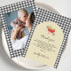 This modern baby shower ´thank you´ card with a country and rustic theme, ´Locally Grown´ (Farmer's Market) features an elegant cream arch on the gray gingham background. The custom text is written in a mix of modern simple typography and handwritten script. It is decorated by a lovely hand-painted watercolor illustration of a red wheelbarrow full of fresh farm veggies. The reverse features the same blue plaid pattern and a custom photo of a baby, if you would like to make it a thank-you or birth announcement card.