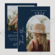 Cartão De Agradecimento Modern Minimal 2 Photo Script Navy Blue Graduation