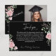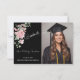 Cartão De Agradecimento Modern Pink Roses Script Graduation Photo