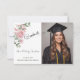 Cartão De Agradecimento Modern Pink Roses Script Graduation Photo