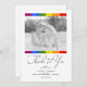 Modern Pride Rainbow Flag Lesbian Gay Wedding Photo Thank You Card with Envelope.