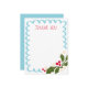 Estilo casual com uma sensação moderna, este cartão de agradecimento é excelente de enviar mensagens de feriado postado de obrigados. Uma armação de cor azul-gelo escalopada é acentuada por uma ilustração verde holly branch e bagas vermelhas correspondentes, além de delicadas flores brancas cremosas. A sensação textural e ilustrada à mão adiciona elegância caprichosa e artimanha, enquanto as fontes do estilo escrevendo à mão abordáveis a mantêm discreta e o cartão de nota ideal para agradecer aos amigos e à família pelos presentes de Natal.