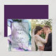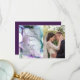 CARTÃO DE AGRADECIMENTO COM FOTO | Redemoinhos abstratos de tinta fluida aparecem como fumaça ou vapor intensamente colorido - em tons de roxo ultra violeta, índigo e azul-esverdeado. Uma moldura prateada com preenchimento esfumaçado translúcido é onde seus detalhes serão inseridos. Este é um design abstrato único criado para a BarefootBride™ por © WhimsicalArtwork™ Personalize o texto, estilo de fonte, cor e tamanho. Criamos este modelo para facilitar a personalização com suas próprias informações. Esta é parte de uma Suite Completa de Papelaria de Casamento