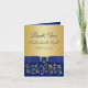 Este elegante cartão de agradecimento de casamento com padrão floral em azul real e dourado com monograma e fitas impressas tem um medalhão com botão falso gravado em azul e dourado que combina com o convite de casamento mostrado abaixo. Todo o texto é personalizável. ***POR FAVOR, NOTE que não há elementos em relevo neste cartão e que, se você alterar a fonte ou o tamanho da fonte, isso pode alterar a impressão do seu cartão. Ele será impresso da forma como você o vê no seu monitor, então, se você tiver problemas de alinhamento ou tamanho, por favor entre em contato comigo para obter ajuda. Eu não verei seu cartão depois que você fizer o pedido, e a Zazzle NÃO editará nada (erros de digitação, alinhamento, etc.). Se você precisar de ajuda ou quiser outros itens correspondentes, envie um e-mail para niteowlstudio@gmail.com.