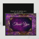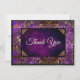 Cartão De Agradecimento Monograma damasco floral dourado roxo elegante