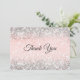 Cartão De Agradecimento Monograma falso com brilho prateado e tom rosado d