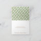 Rua, cartões de agradecimentos de casamento com shamrock no dia de Patrick com um coração verde com shamrocks brancos dentro, ouro com ferraduras de sorte e uma faixa personalizável que diz Obrigado. Uma antiga imagem de creme e pergaminho branco com um sutil padrão de aparência de um cadarço damasco faz com que este tema irlandês seja bem conhecido. Esta design moderna vintage é perfeita para um casamento de março, noiva, casais ou chá noivado. A dentro tem corações diagonais e padrões de shamrock. Pode ser personalizado e monograma com o monograma e as iniciais da noiva e do noivo. Trabalho de arte © Chrissy H. Studios, LLC. Todos os direitos reservados