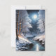 Uma bela lua de cheio sentada sobre um riacho no inverno enquanto a neve cai suavemente.