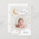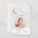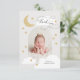 Um obrigado divertido, mas elegante, que você design apresenta sua foto em forma de arco com roteiro de na moda caligrafia e estrelas desenhadas à mão, nuvens e lua crescente. As costas têm mais estrelas.