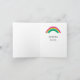 Um cachorro giro numa moto rodeado por um arco-íris colorido e estrelas com texto personalizado/personalizado no verso. Design para crianças.
