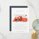 Uma Diversão Coleção de ANIVERSÁRIO COM TEMA DE CAMIÃO DE BOMBEIROS para Meninos Simpáticos - é uma Ilustração simples e elegante de um camião de bombeiros vermelho com chapéu de bombeiro, perfeito para a festa de aniversário do seu pequeno. É muito fácil de personalizar, com os seus detalhes pessoais.