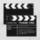Premiere your big day in cinematic style with this creative movie clapboard thank you card. The perfect blend of modern and retro style for anyone who love classic Hollywood film and movie aesthetics. Personalize it with your own details and message and thank your family and friends for being your all star cast.