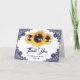 Thank your guest for sharing in your special day with these elegant navy blue rustic sunflower wedding thank you cards. Matching items available.