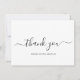 Negócios brancos e negros elegantes agradecem a você cartões com "obrigado você" com alternâncias em uma caligrafia manuscrita com seu nome. O verso tem sua mensagem personalizada. Este design simples e minimalista é excelente para um maquiador, um cabeleireiro, um técnico de lascas, um salão de beleza / unhas ou qualquer negócio de mulheres.