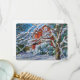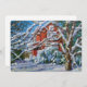Uma pintura encantadora de uma acolhedora casa vermelha e neve recém-caída — adorável carta plana para o Natal — ou ao longo do ano. Por L. Diane Johnson, pintor paisagista.