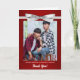 Agradecimento de Casamento Gay Adorável dos dois noivos. Feito em uma elegante impressão vermelha com um laço prateado e espaço para a foto e nomes dos noivos na frente. Dentro, o casal pode expressar sua gratidão por presentes, apoio ou presença em seu casamento gay.