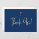 Cartão De Agradecimento Nome da Primeira Comunhão Dourada Azul