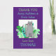 Uma nota de agradecimento de seu filho é mais especial para o tio e a tia quando personalizada com os nomes deles, bem como o nome do seu filho, e uma mensagem personalizada, e uma ilustração de um gato fofo e folhas verdes. Personalize facilmente a tipografia com seus próprios detalhes. Você também pode alterar as cores do fundo roxo e do texto, se desejar, através da opção Personalizar Mais.