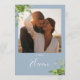 Cartão De Agradecimento Número de Mesa Floral Verde Foto Azul Poeira