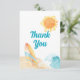 Cartões de agradecimento de "The Big One" aquarela para festa de 1º aniversário na praia. Envie um bilhete de agradecimento aos convidados que compareceram e trouxeram presentes para a sua festa de 1º aniversário com tema de praia. O design apresenta prancha de surf em aquarela, onda turquesa, areia e sol laranja/amarelo. Personalizável com a prancha de surf perfeita, praia, nota de agradecimento para festa de 1º aniversário "The Big One". Certifique-se de verificar a Coleção de 1º Aniversário The Big One Watercolor Beach com uma variedade de suprimentos para criar uma festa de 1º aniversário curada.