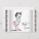 Cartão de agradecimento de menina bebê com fundo de renda rosa e preto e adorável menina bebê vintage usando calças com babados, chinelos de coelho rosa e laço rosa no cabelo. Este fofo cartão de agradecimento de menina bebê estilo flat rosa é facilmente personalizado adicionando sua mensagem no estilo de letra, tamanho e cor, e redação de sua escolha, ou deixe em branco para adicionar sua mensagem manuscrita após chegarem.