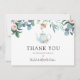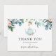 Agradeça aos seus convidados por celebrar a noiva! Este cartão postal de agradecimento de chá de panela temático de festa de chá apresenta uma cascata floral em aquarela e uma ilustração encantadora de bule de chá. Personalize com suas informações ou clique em "Clique para personalizar ainda mais" para editar estilos de fonte, tamanho e cores.