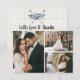 Lindos elementos florais em azul jeans acentuados com detalhes de flechas boêmias arrojadas dão a este design muitas boas vibrações! Fundo de madeira rústica, tinta branca e estilo de aquarela realista trazem textura graciosa e charme. Natural e fresco para uma celebração de casamento contemporâneo.