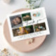 Cartão-postal de anúncio de nascimento de bebê com fotografia mínima moderna. Design com o obrigado que você escreve, 5 fotos do bebê, estatísticas de natalidade, data e um nome na frente.