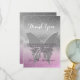 Adorável, elegante, caprichoso, sonhador cartão de agradecimento de chá de bebê, com fundo de glitter rosa roxo e borboleta prateado.